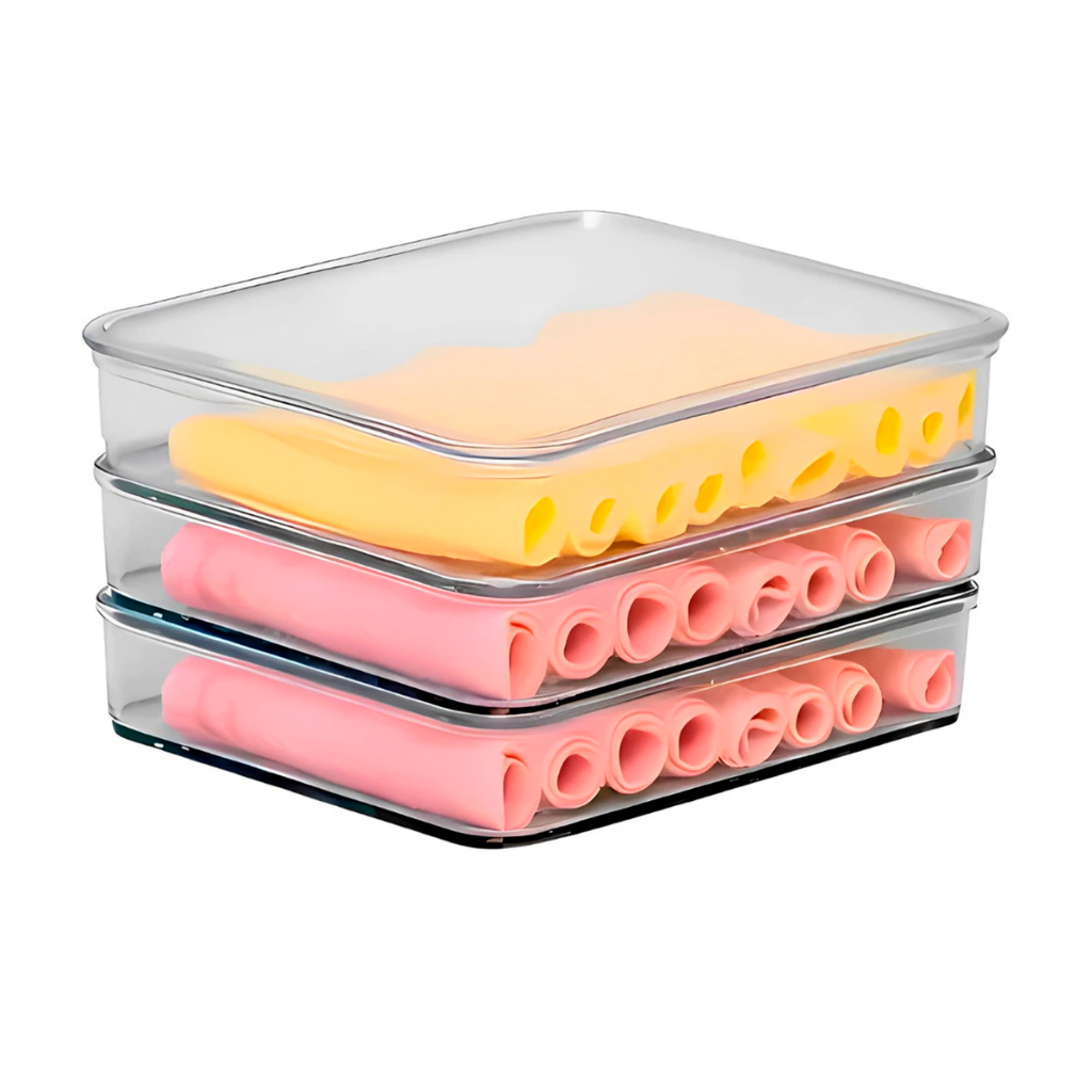 Porta Frios Presunto Queijo Acrílico Resistente Triplex Triplo Com Tampa Hermético Empilhável