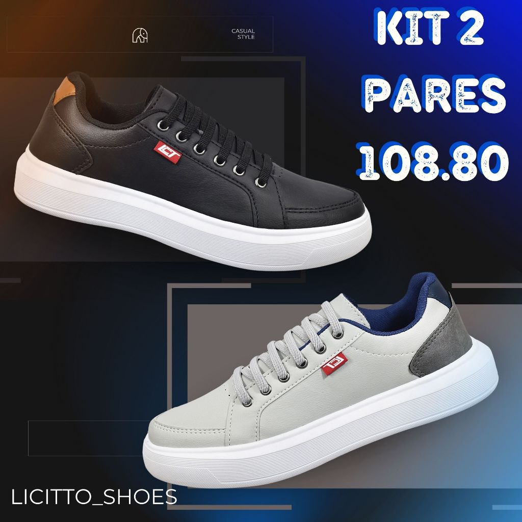 KIT 2 pares Tênis Sapatênis Masculino Social Casual Leve Macio Confortável