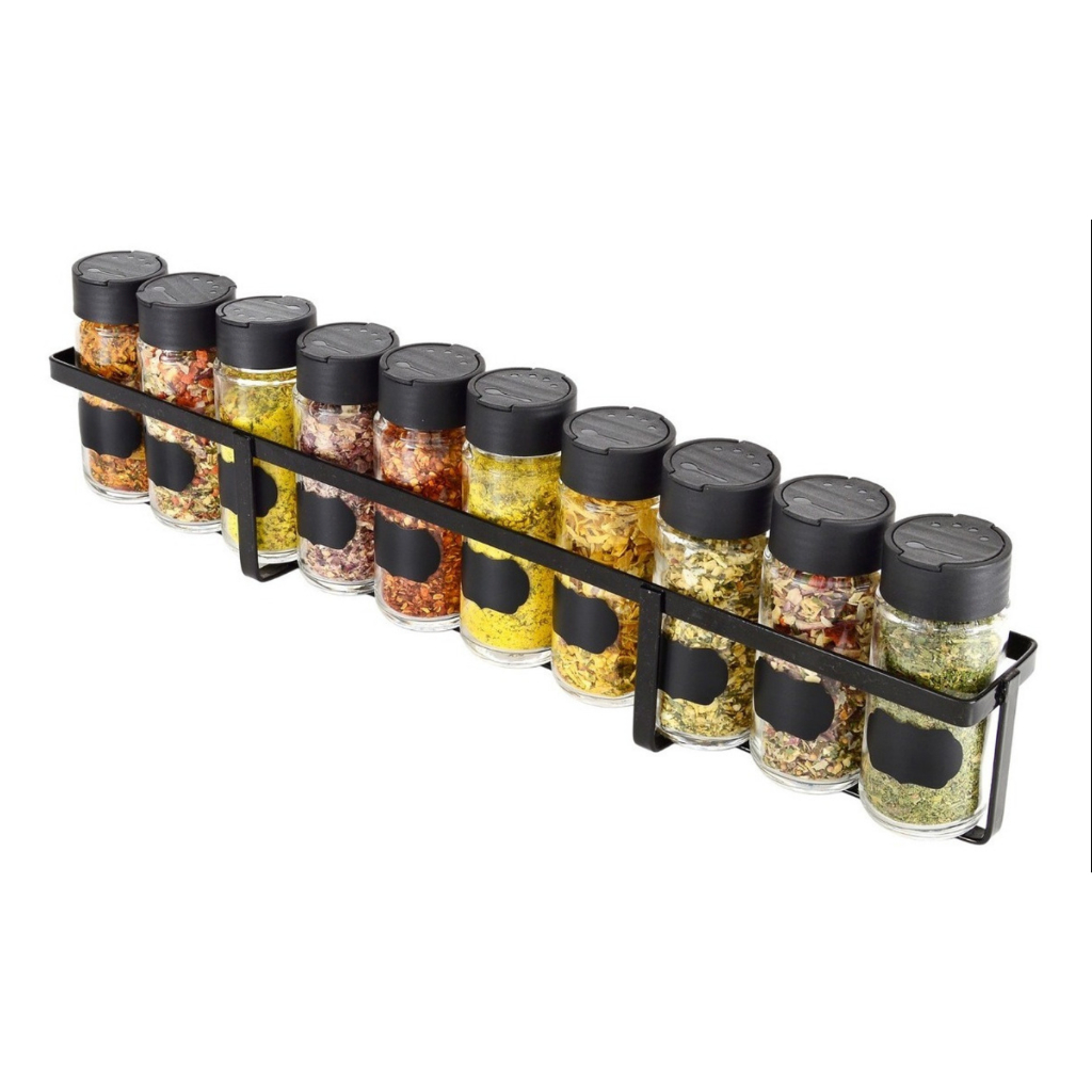 Porta Temperos Condimentos Tampa Dosadora Dupla 10 Potes de Vidro com Etiqueta e Caneta