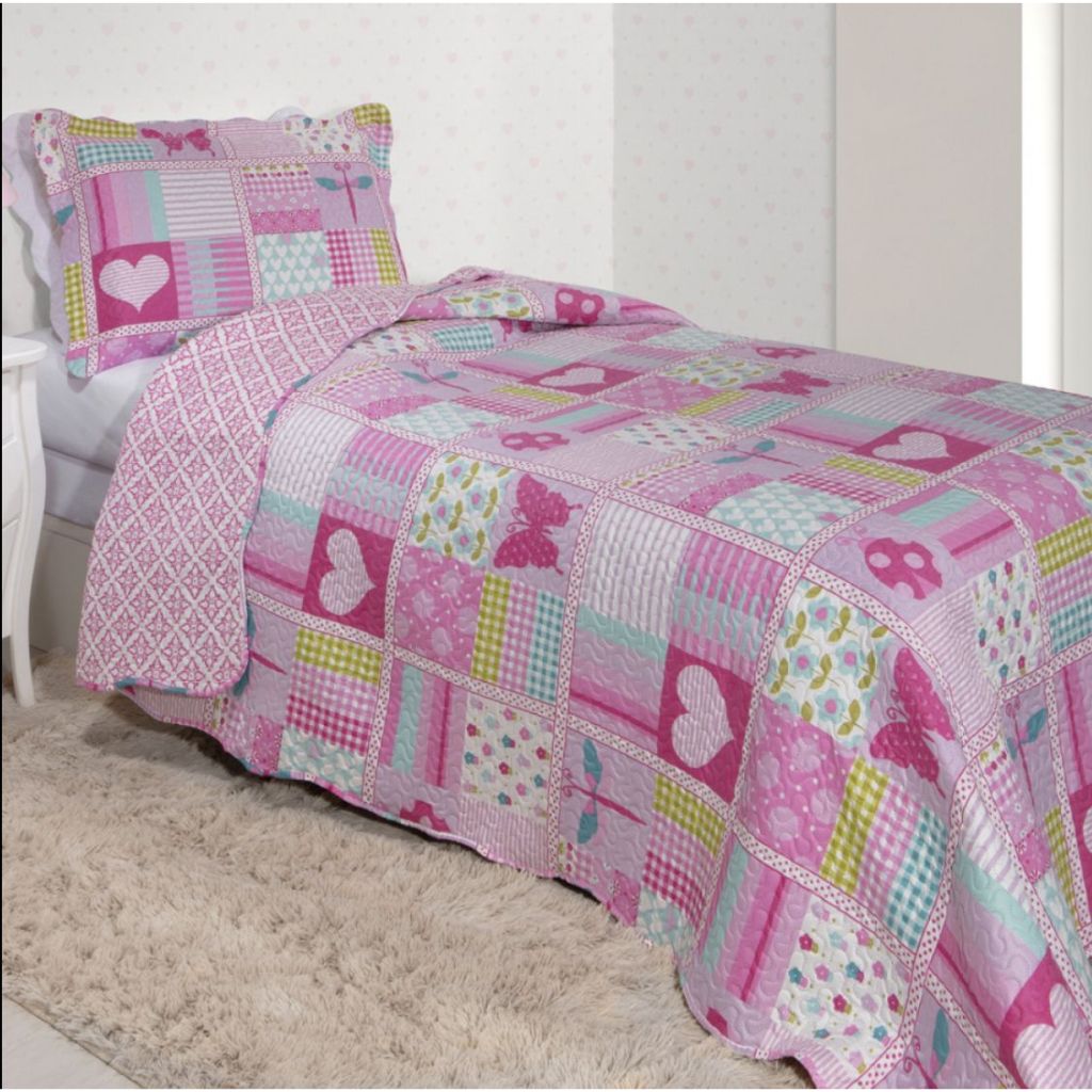 Cobre Leito Infantil Dupla Face 2 Peças Quarto de Menino e Menina C/Porta Travesseiro Aba Americana