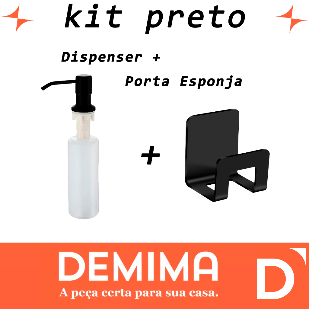 Kit Dispenser Preto De Embutir + Porta Esponja Preto C/ Fita Dupla Face - Demima