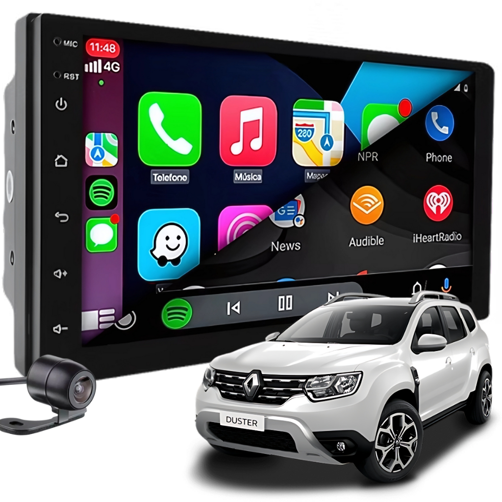 KIt Multimídia Android Auto CarPlay Gps Wifi p/ Renault Duster Sandero Logan Kwid Captur + Câmera Ré