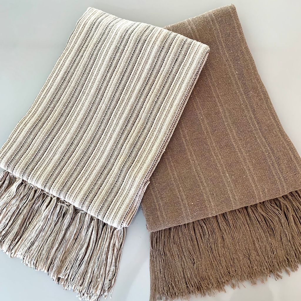 Kit 2 De Manta Para Sofá Terracota E Cru Luxo 1,20m X 1,80m 100% Algodão Tear Mineiro