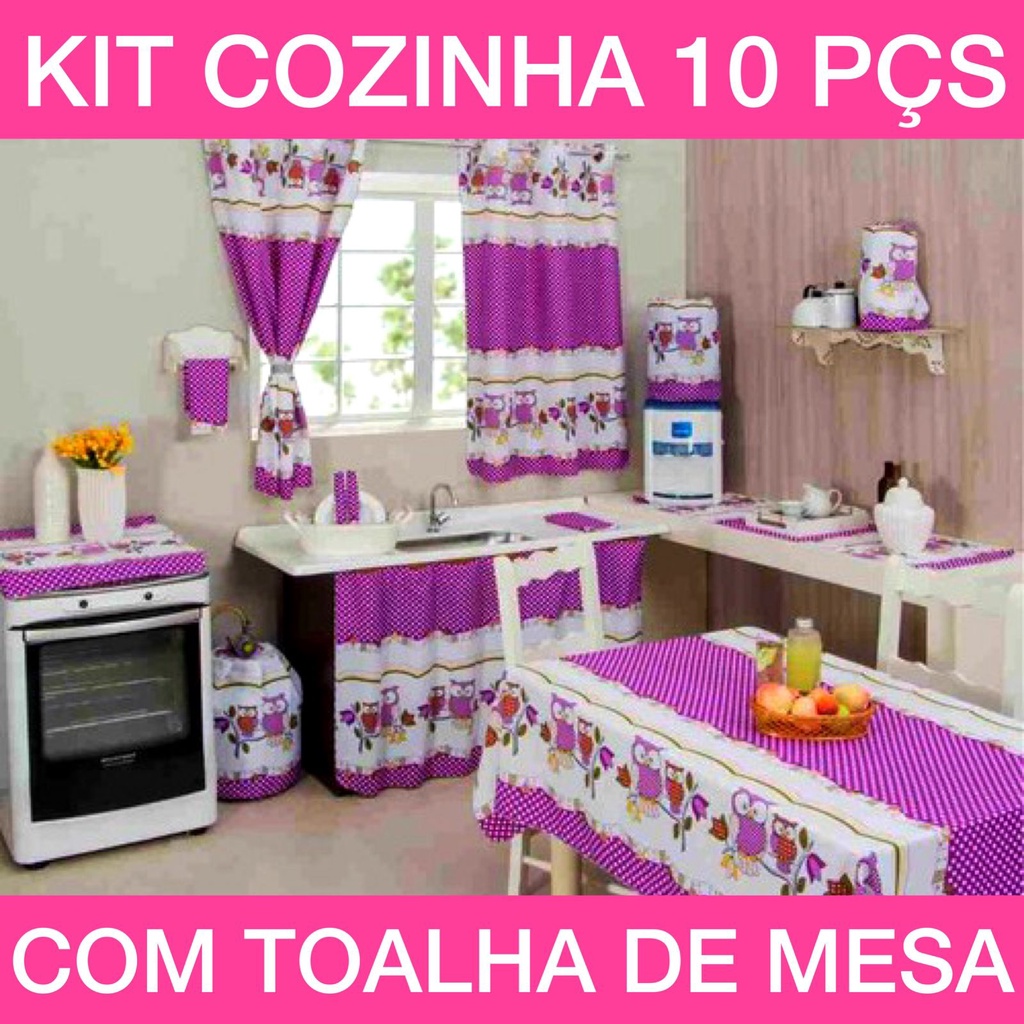 KIT Jogo de Cozinha 10 Peças com Toalha de Mesa 6 Cadeiras