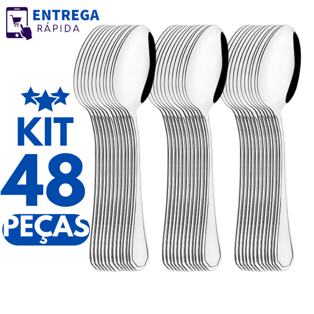 Jogo 48 Colher de mesa sopa Kit com 6, 12, 18, 24, 36 e 48 peças em aço inox talher