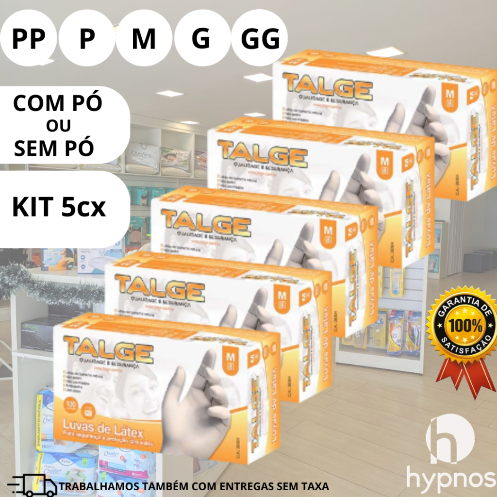 Luva Látex Procedimento Com pó PP, P, M, G, GG Branca Kit 5 Caixas 500un - Talge