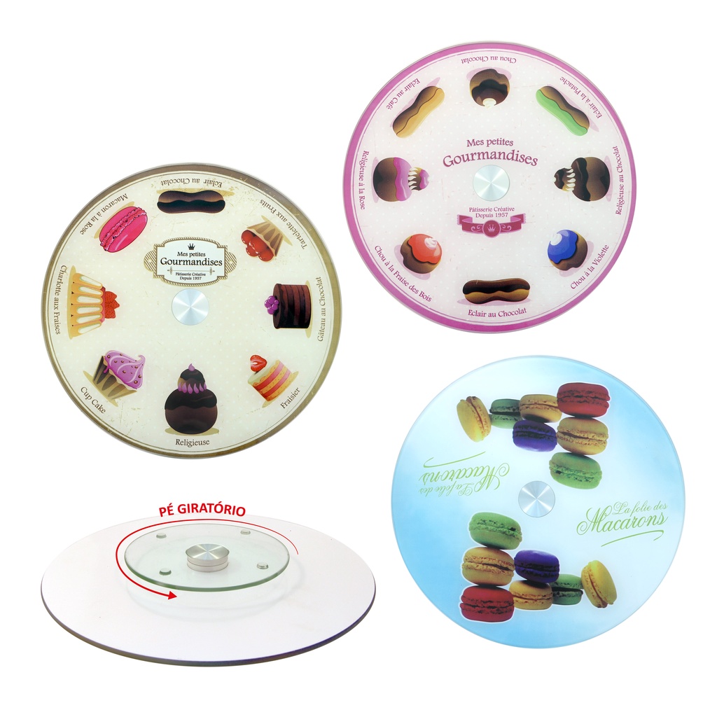 Prato Giratorio Redondo Vidro 30cm Confeitaria Bolo Decoracao Suporte Estavel