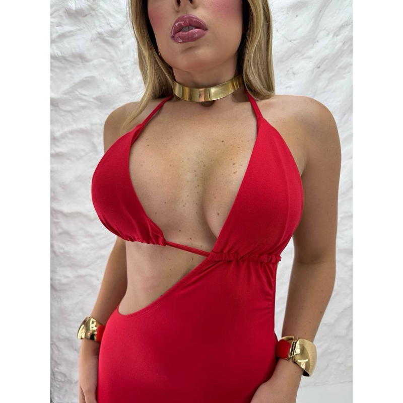 Vestido Longo Feminino Elegante Fenda Lateral Costas Nuas Amarração Decote