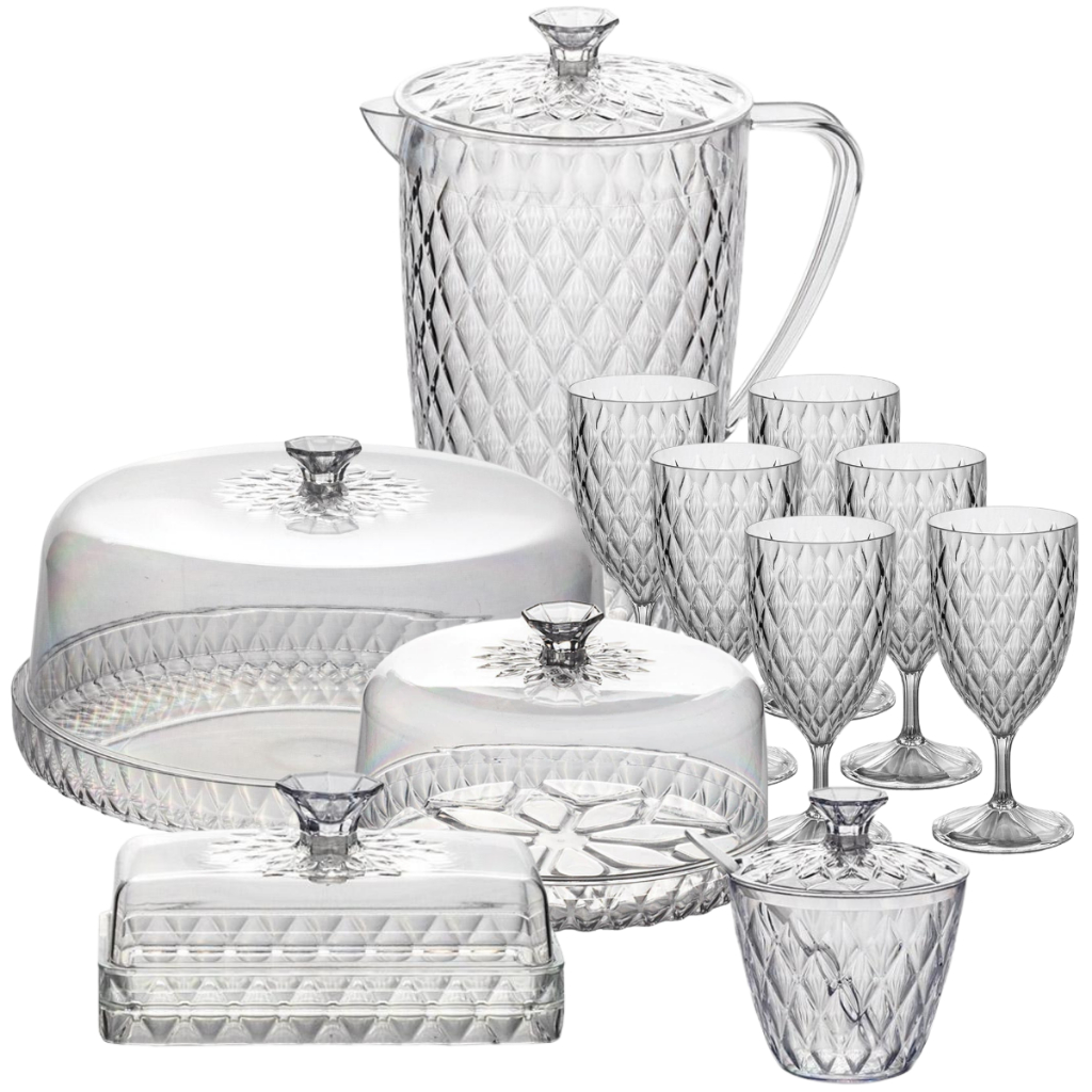 Kit Mesa Posta Glamour 11 Peças – Café da Manhã Completo com Jarra + Queijeira + Manteigueira + Açucareiro + Boleira