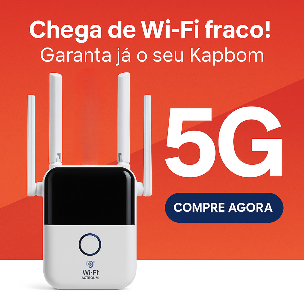 Amplificador de Sinal Wi-Fi Dual Band 5G e 2.4G – Repetidor Sem Fio Rápido e Potente 1200Mbps