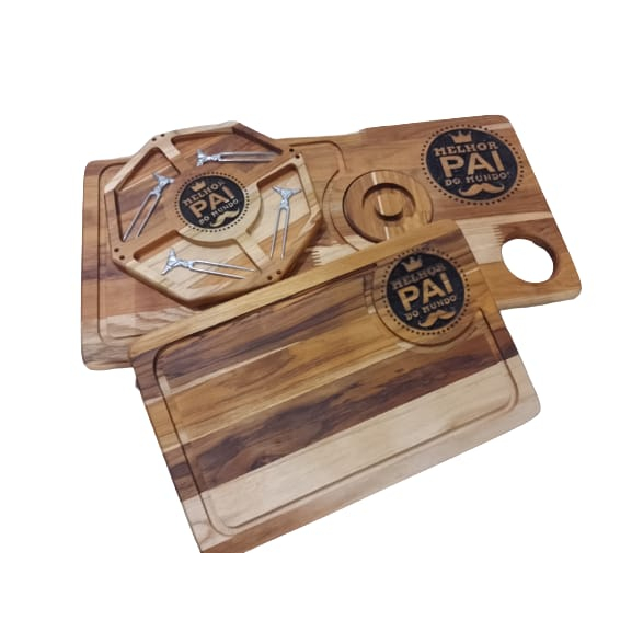 Kit Churrasco Tábua de Carne Grande e Estojo de faca e Garfo Inox Personalizado