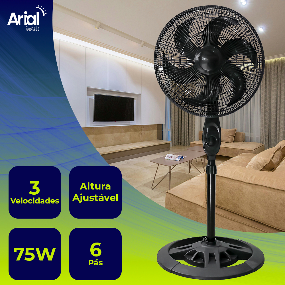 Ventilador De Coluna de Chão Pé Pedestal Turbo Vento Forte 126W, 6 Pás, Super Silencioso 110/220V