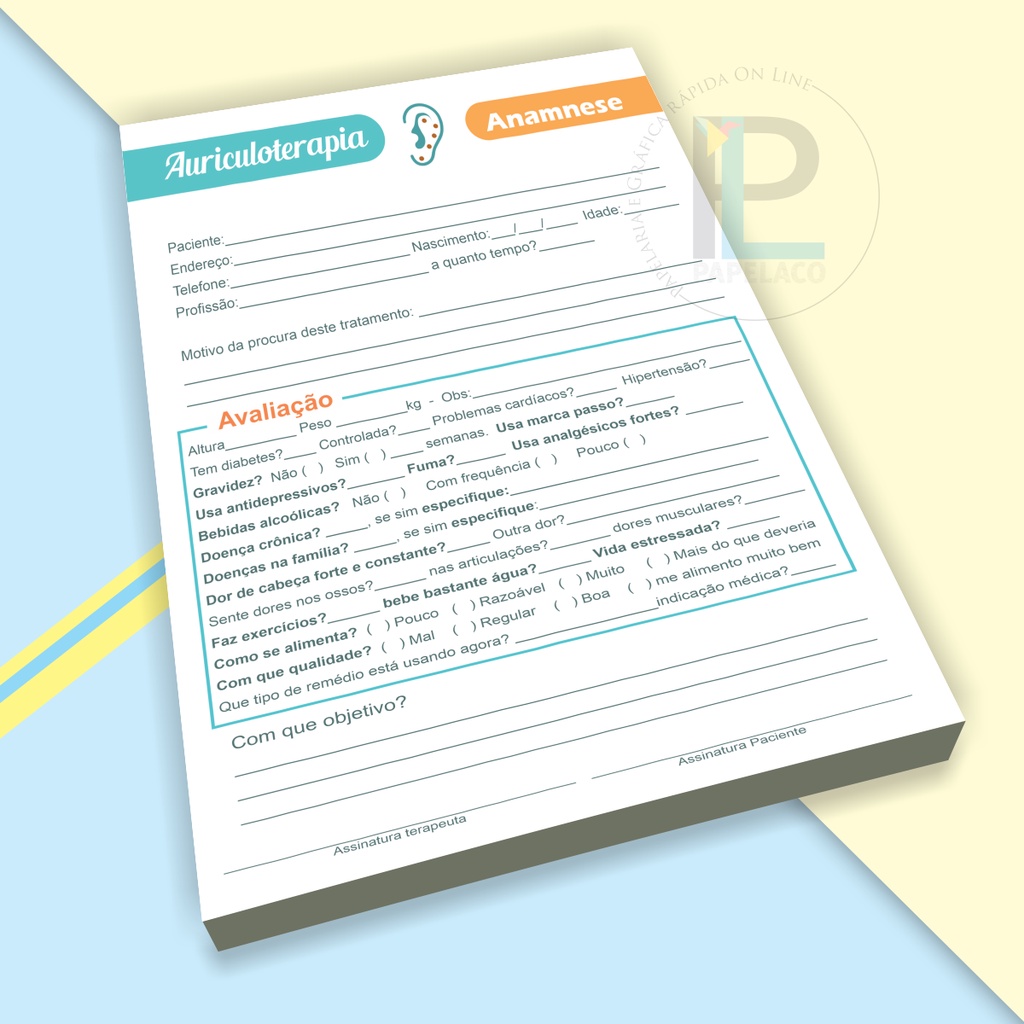 Anamnese Auriculoterapia - Com seu Nome - Personalizada Bloco a5 - Orientações - 100 fls