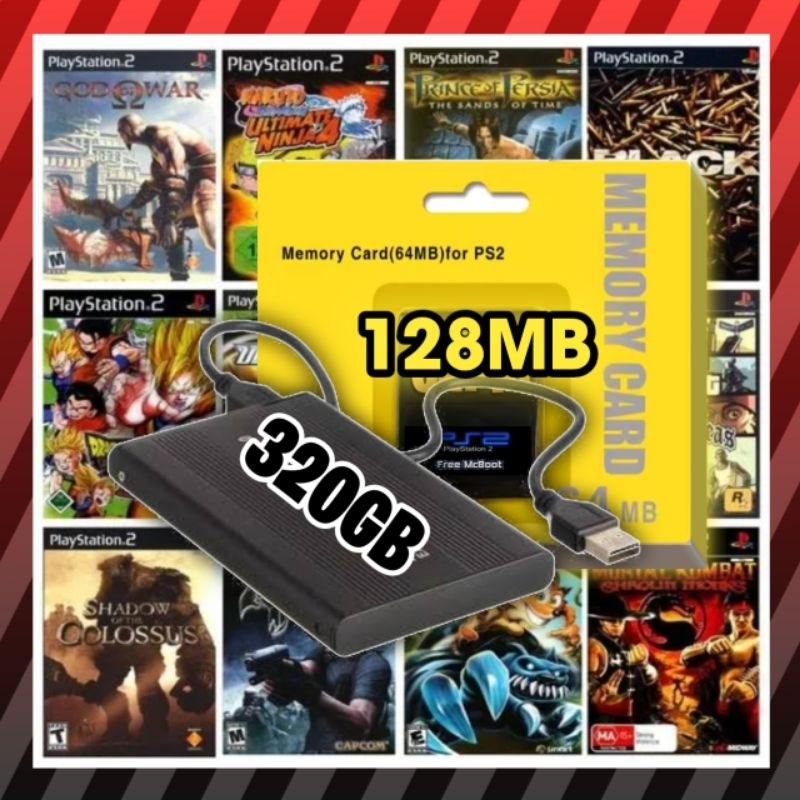 Kit Hd Externo de 320 gb Ps2 lotado de Jogos + memory card com sistema opl instalado atualizado pronto para uso playstation 2 play2