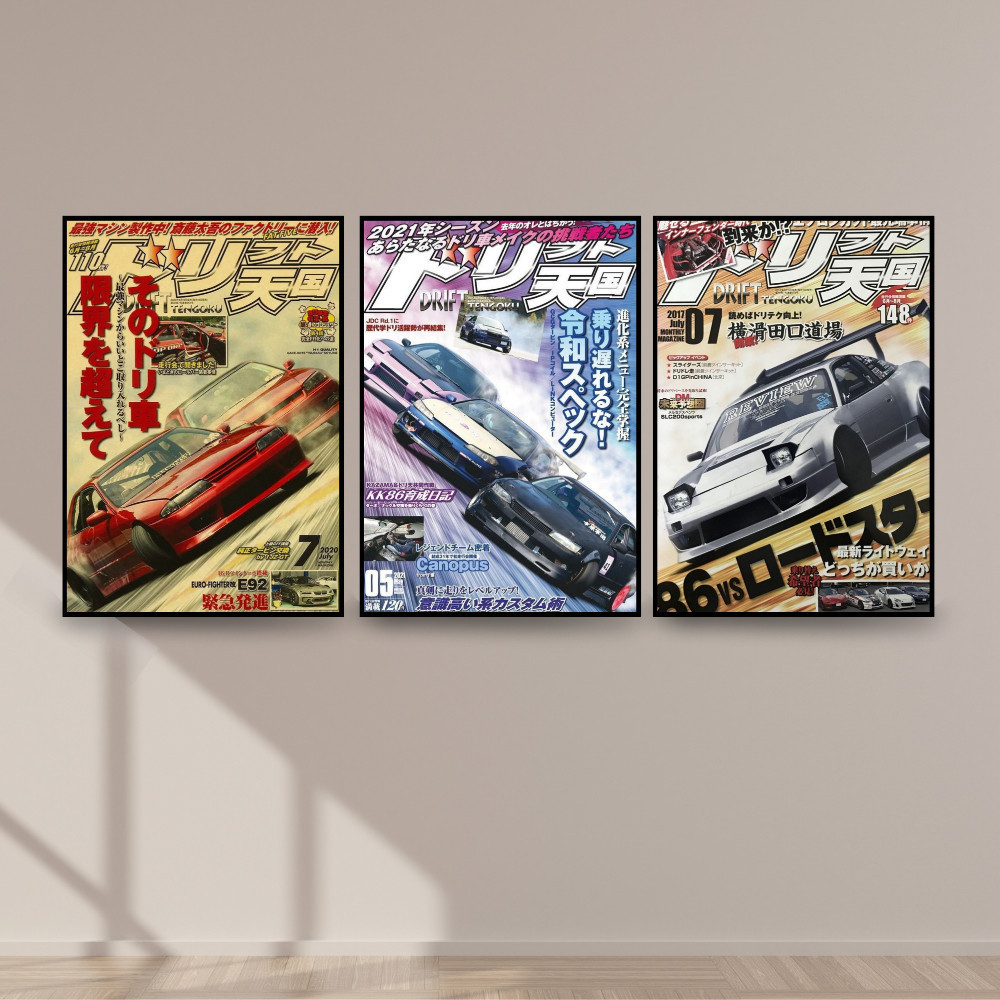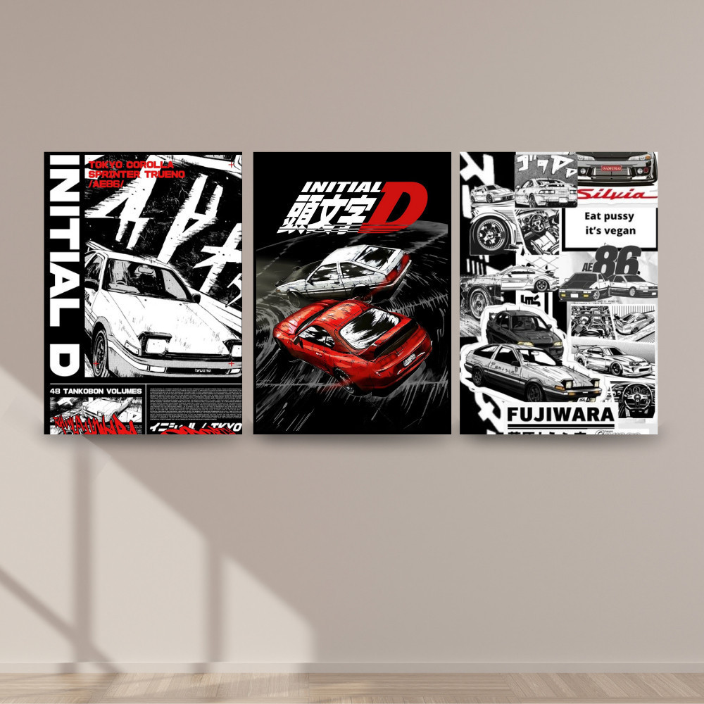 Kit Quadro Decorativo em MDF 3 peças | Estilo Retro Initial D Drift Japan Manga Carros JDM Carro