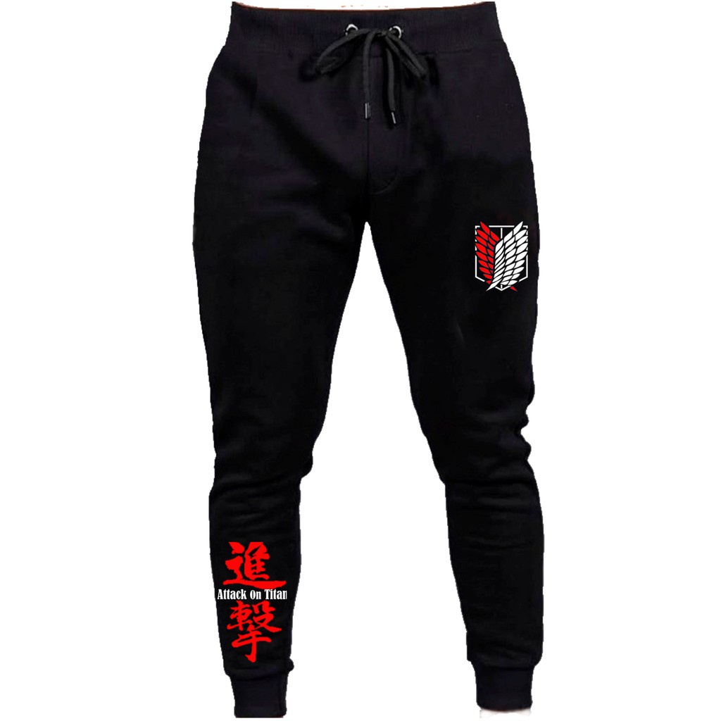 Calça Academia Jogger Moletom Attack On Titan Anime Desenho Flanelado Bolso Lateral AD