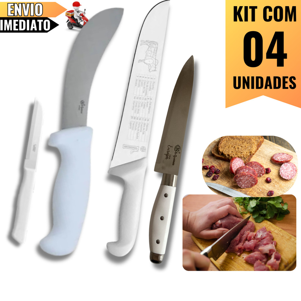 Kit Faca Tira Couro + Facas de Carne Profissional Para Açougue, Churrasco, Cozinha, Uso Profissional e Domestico