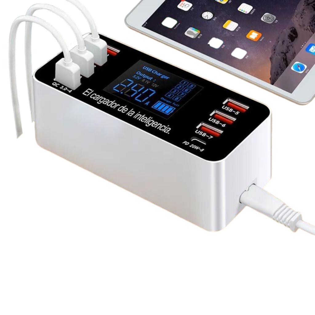 Carregador Inteligente Com 8 Portas Tela Led USB Charger Estação de Carregar Multiportas 40W Qc 3.0