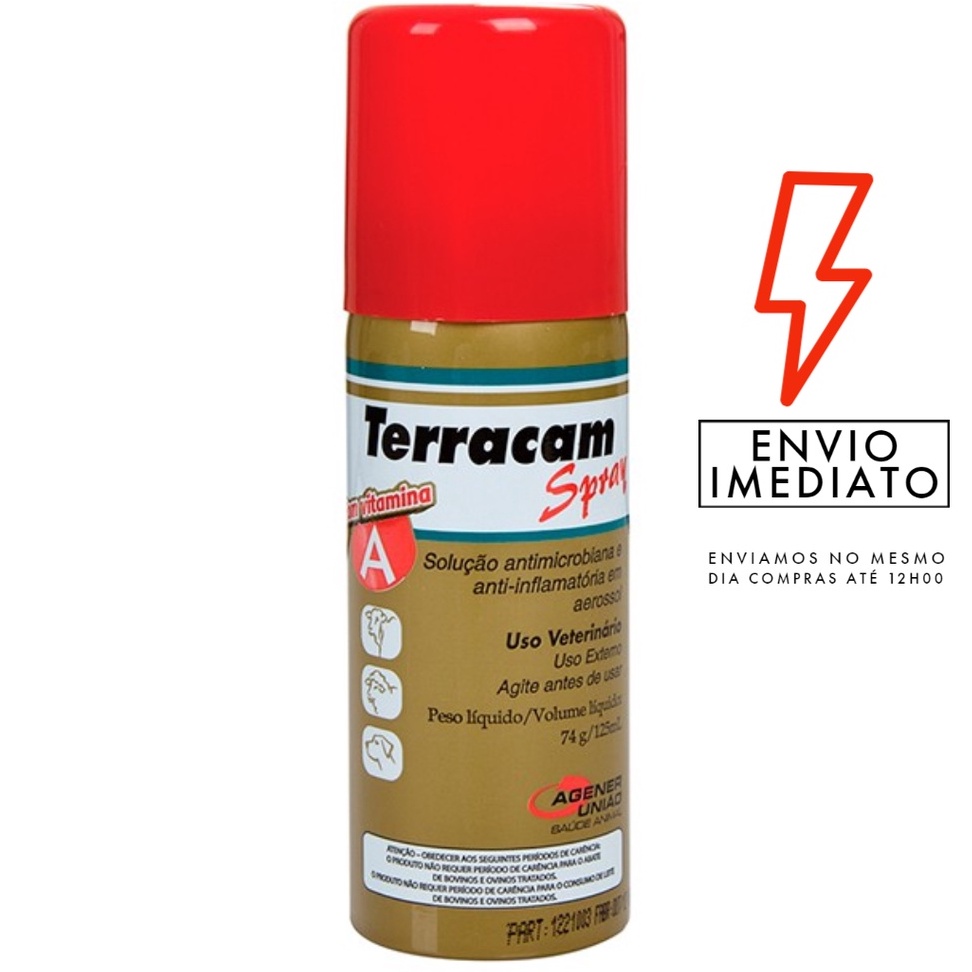 Terracam Spray 125ml Anti-inflamatório Para Machucados para Pet Cachorro Gato Bovinos Ovinos