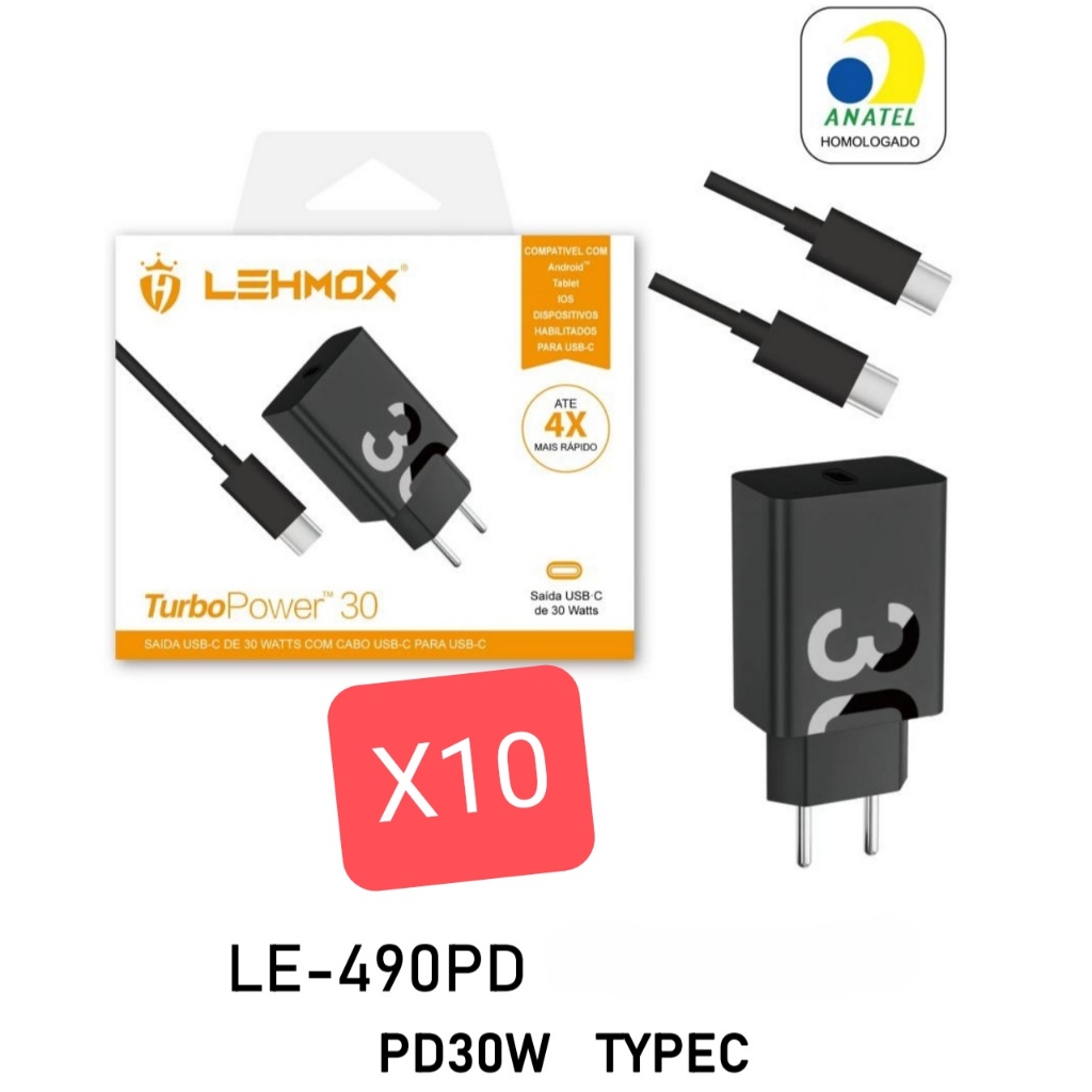 kit 10/6 carregador usb-c para usb-c Turbo Power 30W Lehmox LE-490PD/25w le-139 tipoc