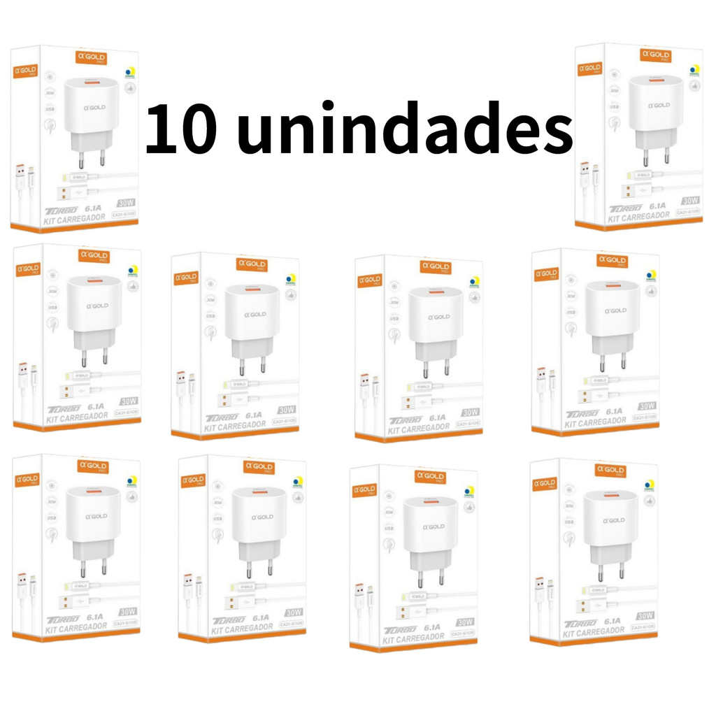 Kit 4 6 e 10 pcs Cabo e Carregador A’Gold 6.1a Tipo C/IOS/CA31