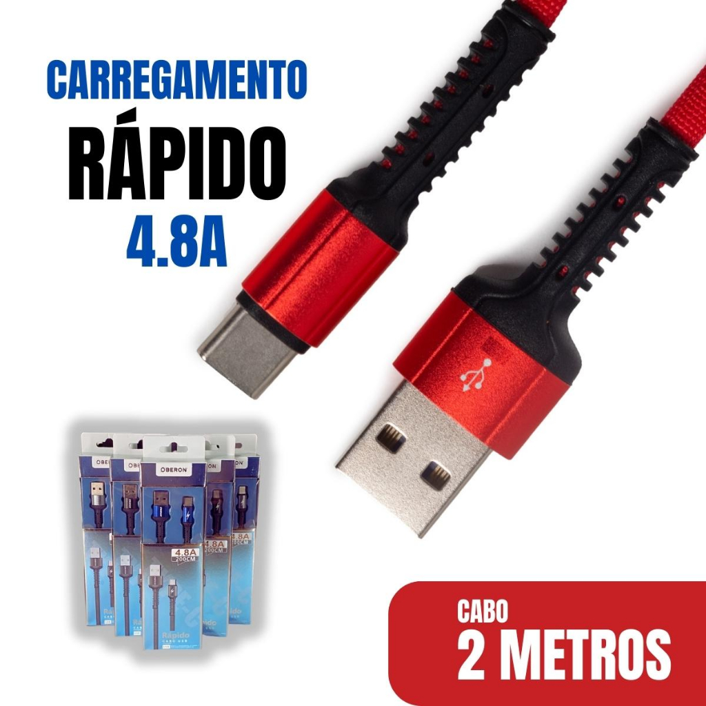 Cabo tipo C Carregamento Rápido 4.8A USB C 200 CM (2 Metros) Transferência de dado