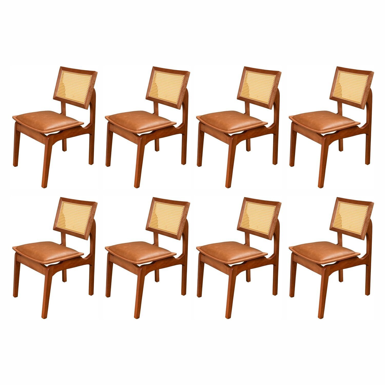 Kit 8 Cadeiras de Madeira 100% Maciça Tauari e Rattan Natural com Assento Estofado Daren Li