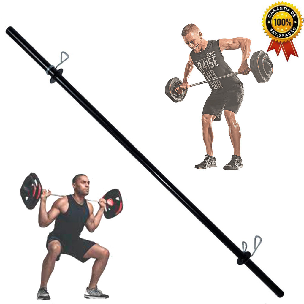 Barra Body Pump Barra Oca 1,50M Para Agachamento + Par De Presilhas Para Treino De Musculação Treino Fitness Em Casa E Em Academia