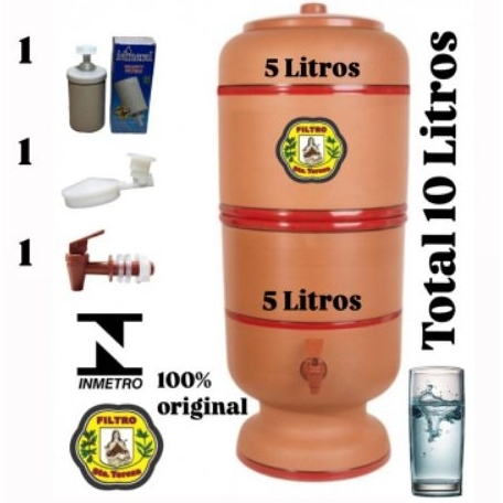 Filtro de Barro Completo com Vela Boia Torneira Total 8 Litros Filtro de Agua Ceramico