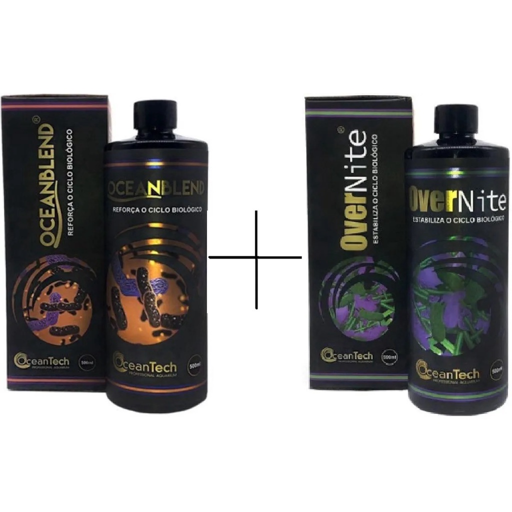 Kit OceanBlend 500ml + OverNite 500ml Ocean Tech Acelerador e Estabilizador Biológico para Ciclagem de Aquário
