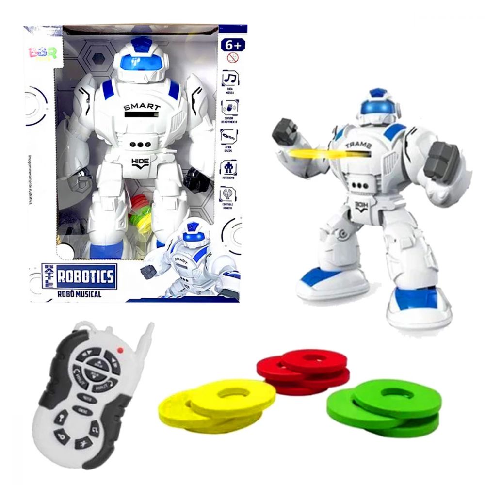 Boneco Robo Musical Smart com Movimento e Som Lança Dardos - Bbr R3060