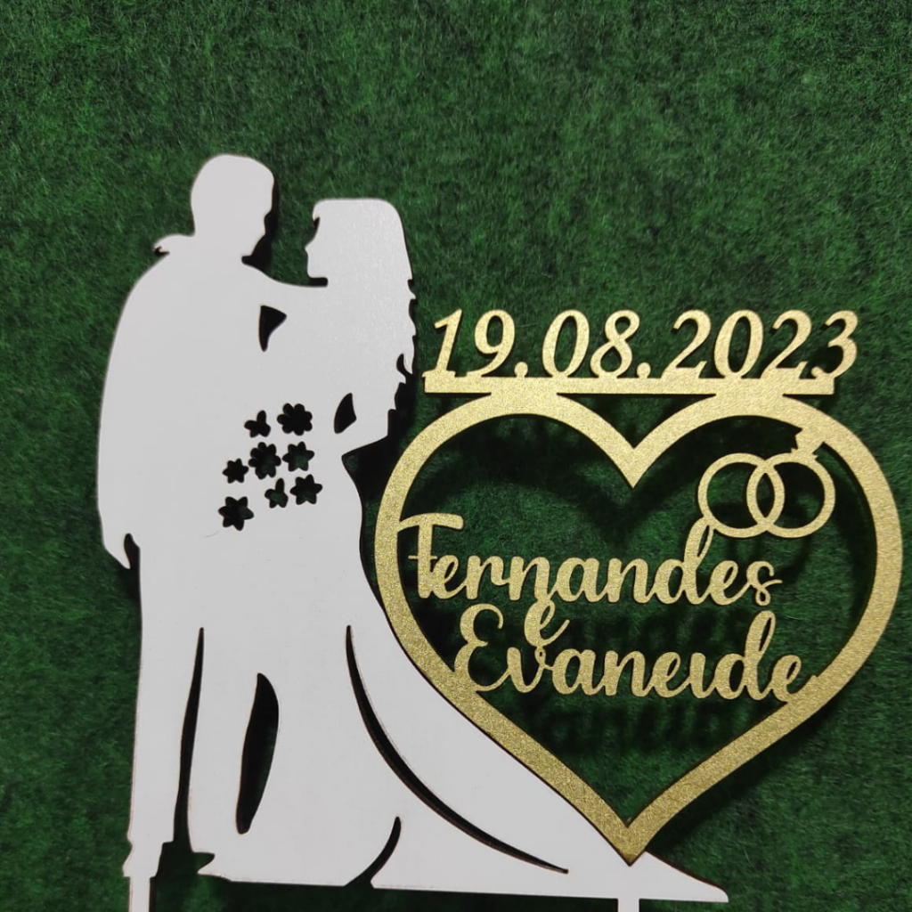 Topo de Bolo Noivos (Coração Dourado ao lado)Personalizamos com o nome