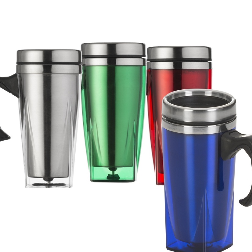 Caneca Acrílica Inox Fundo Quadrado 450ml Com alça