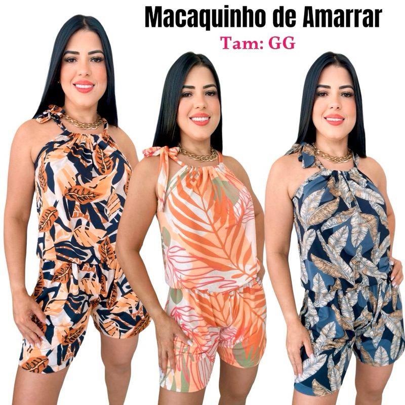 Macaquinho Curto Feminino Soltinho Verão Tecido Duna Moda Verão Praiano