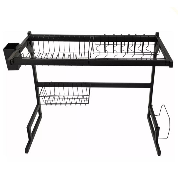 Escorredor de Louças Com Porta Talheres Organizador de Cozinha Suspenso Em Aço Inox Preto