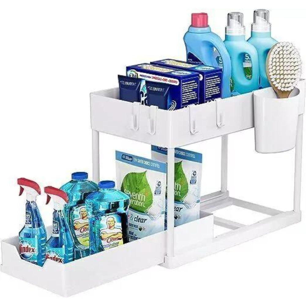 Organizador Prateleira Multiuso 2 Níveis Andares Bandeja Gaveta Corrediça Banheiro e Cozinha Armário