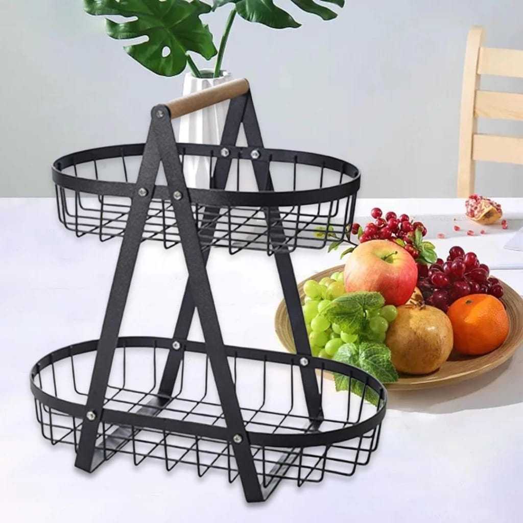 Fruteira de Mesa Cesta Frutas de Metal 2 Andares Organizador de Alimentos Multiuso Casa e Cozinha