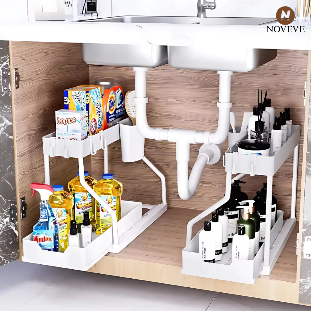 Organizador Prateleira Multiuso 2 Níveis Andares Bandeja Gaveta Banheiro e Cozinha Armário NOVEVE