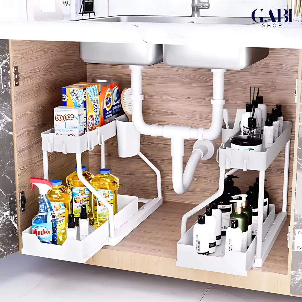 Organizador Prateleira Multiuso 2 Níveis Andares Bandeja Gaveta Banheiro e Cozinha Armário GABI SHOP