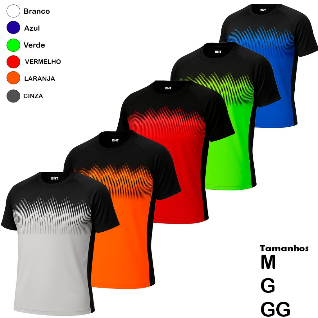 KIT 5 CAMISETA DRYFIT MASCULINA CORRIDA TREINO ESPORTE FUTEBOL ACADEMIA BIKE CAMISA LEVE CONFORTAVEL