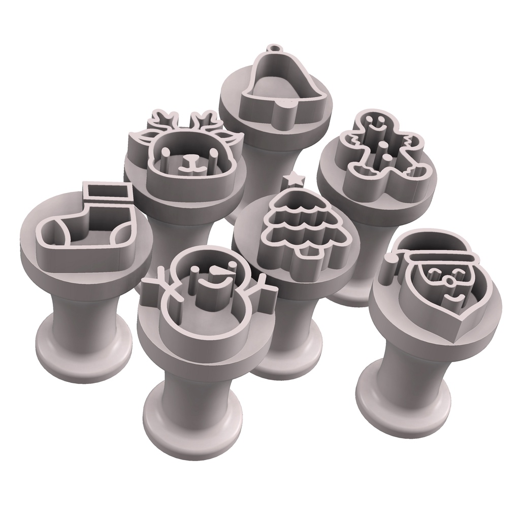 Kit 8 Carimbos/Cortador/Marcador/Molde Biscoito Natal Papai Noel Boneco Gengibre Puxador