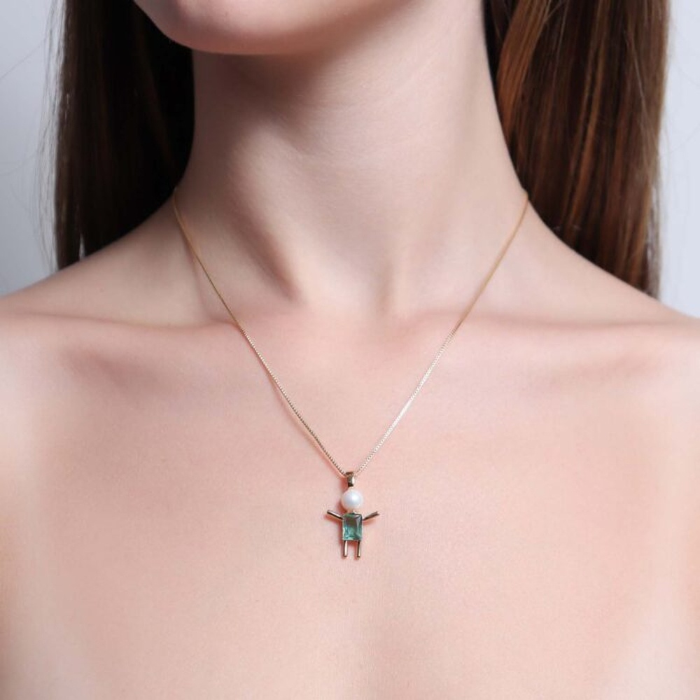 Semi Joias-Colar com Pingente Filhos Menino Menina Casal Dois Filhos Banhado Folheado a Ouro 18k com Zircônias Colorida e Coração