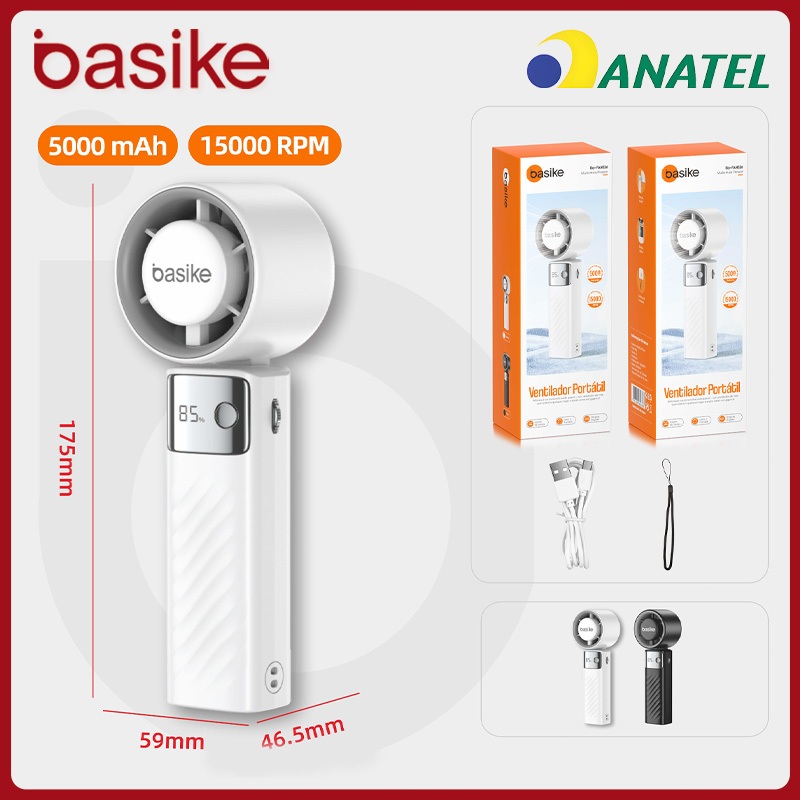 Basike 2025 Ventilador portátil mini refrigeração display digital 6000mAh Ventilador USB 18000RPM