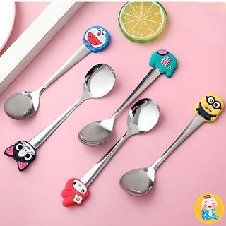 Fofo Desenho Animado Colher De Aço Inoxidável Cabo De Silicone Café Personagem Copo Sopa Bebê Crianças Adultos Jantar