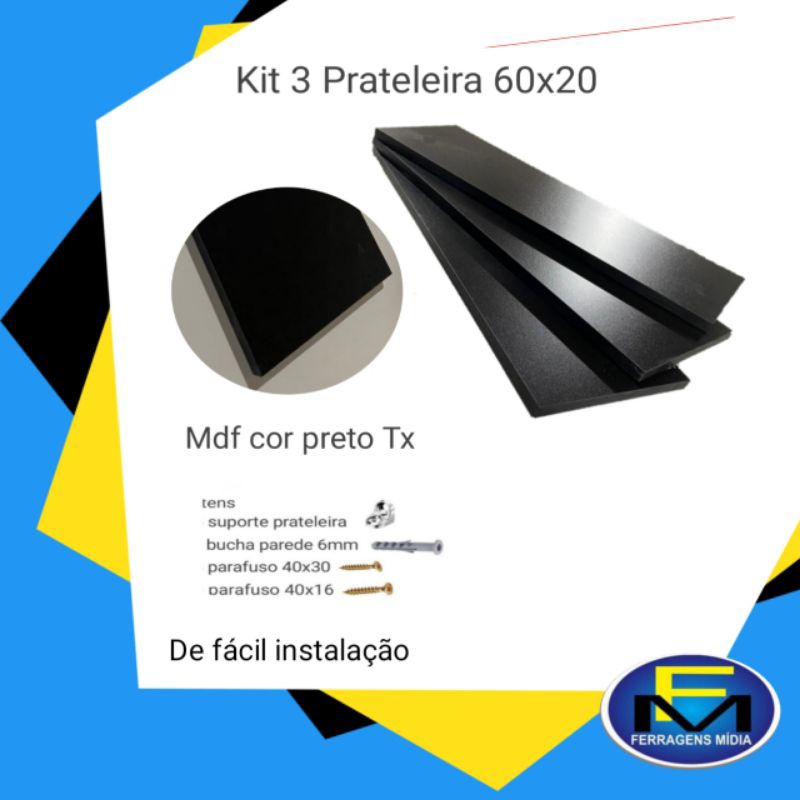 kit 3 Prateleira 60x20 nas cores Branco Preto ou Louro Freijó 100% Mdf