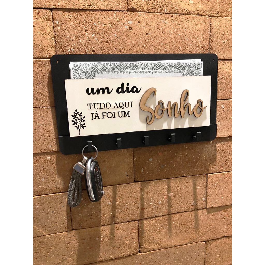 Porta Chaves e Porta Carta com 5 Ganchos Parede Decoração Moderna Madeira em MDF - UM DIA TUDO AQUI JA FOI UM SONHO