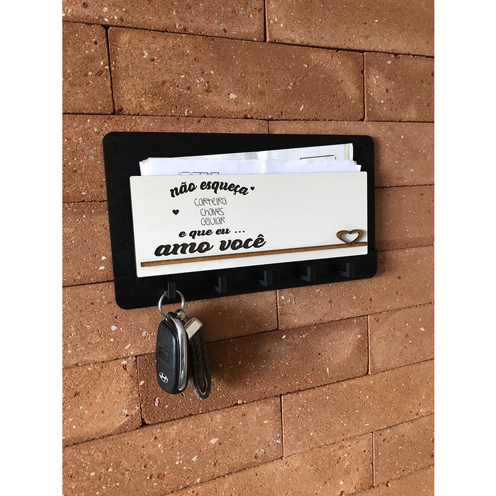 Porta Chaves Porta Carta 5 Ganchos Parede Decoração Moderna Madeira MDF NÃO ESQUEÇA A CARTEIRA O CELULAR E QUE AMO VOCE