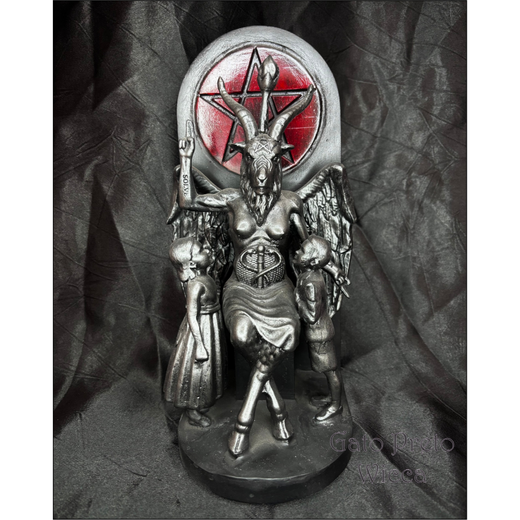Estátua/Escultura Baphomet no Trono Templo com Crianças Bode Resina