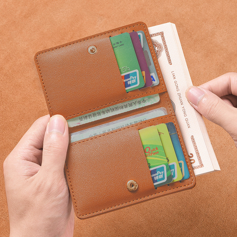 Carteira Pequena De Couro Cor Sólida PU Para Mulheres Simples Com Botões Hasp Bolsa Ultra Fina Cartões De Crédito