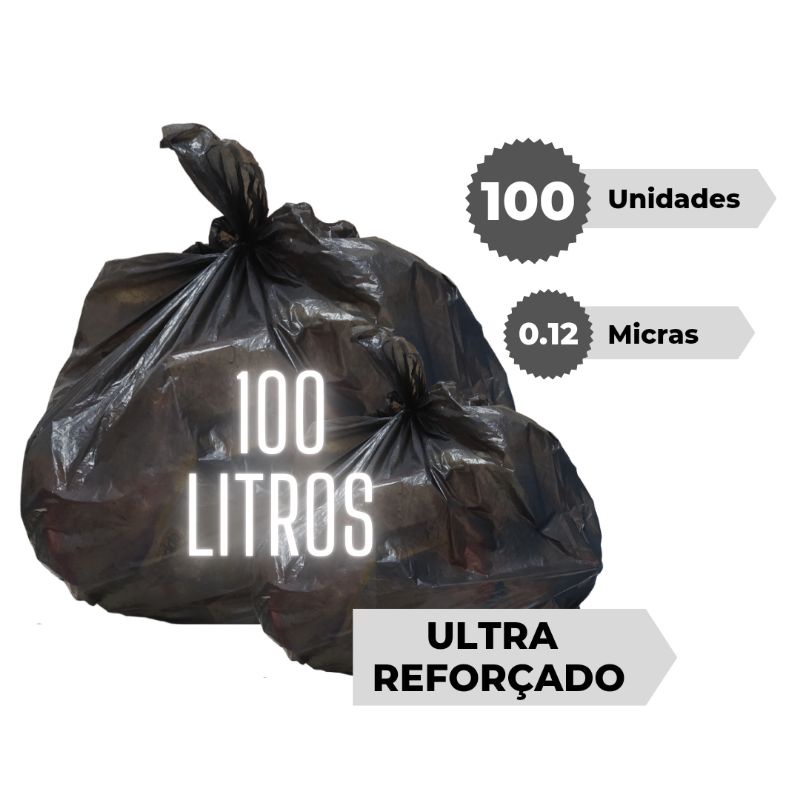 Sacos De Lixo 100 Litros Extra Reforçado micra 0,12 Reciclável com 100 Unidades direto da Fábrica.